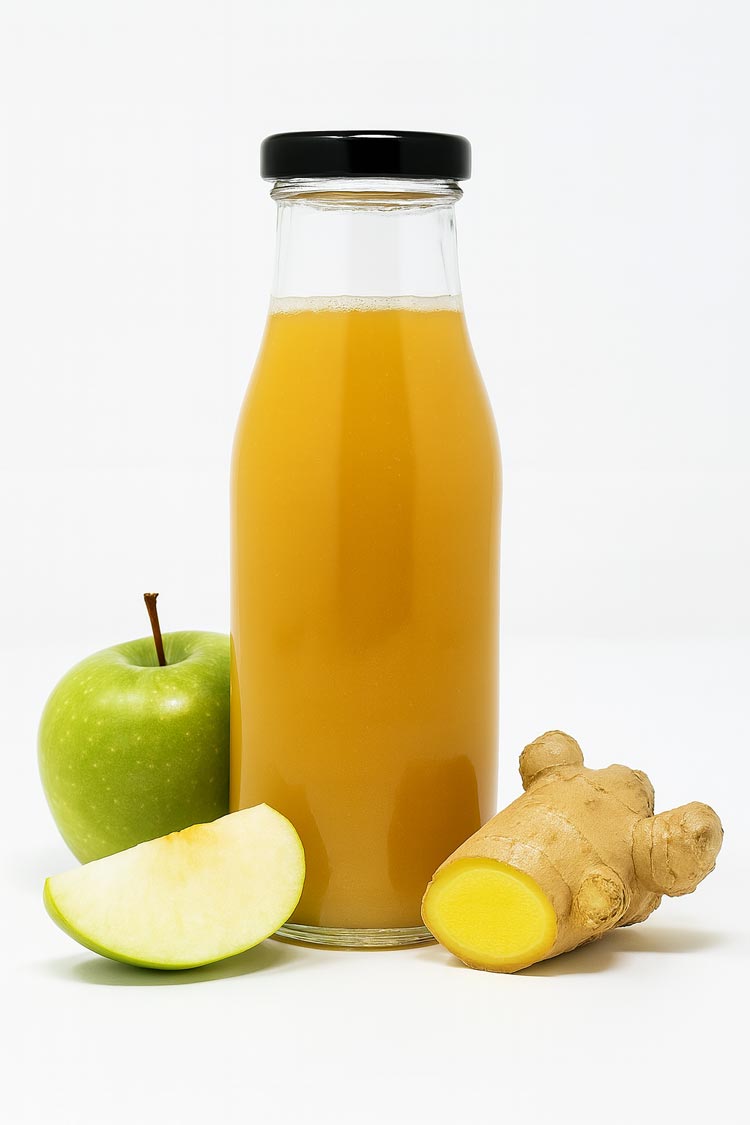 Az alma természetes forrása a pektinnek, C- és B-vitaminoknak, valamint káliumnak, míg a gyömbér gazdag gyulladáscsökkentő hatású gingerolban, és támogatja az emésztést.
