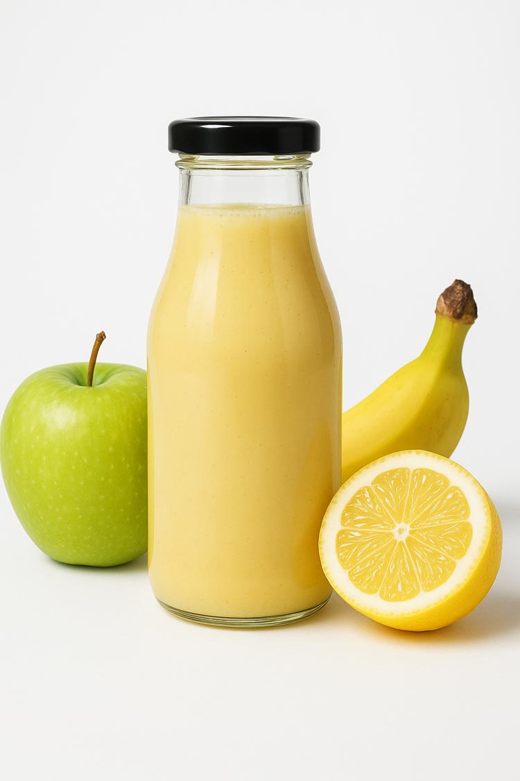 A 60%-os almalé gyümölcsös alapot ad, míg a banán selymes textúrát és természetes energiát biztosít. A citrom finom savassága frissít és élénkít. Az alma pektint, B- és C-vitamint, a banán káliumot és gyorsan hasznosuló szénhidrátokat, a citrom antioxidánsokat és C-vitamint kínál. Lágy, mégis élénkítő ital, ami egyszerre táplál és felfrissít.